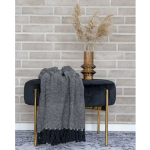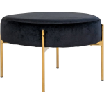 Met zijn afmetingen van 61 x 39 cm (ø x H) biedt de poef voldoende ruimte om je voeten op te laten rusten of om er spullen in op te bergen. De zwarte kleur geeft de poef een chique uitstraling, terwijl de messing poten een vleugje elegantie toevoegen.