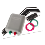 De Pond Protector Kit bevat alles wat u nodig heeft: 10 synthetische staken, 80 meter elektrische draad (rood en groen),een metalen grondpen, connectoren en schroeven. Let op: laat kinderen niet spelen rondom het elektrische hek en schakel de apparatuur uit bij het werken in of om de vijver.