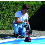 Met een krachtige 730 W motor kan deze vuilwaterpomp maar liefst 16.500 liter water per uur verpompen, met een maximale opvoerhoogte van 8,5 m. De pomp is geschikt voor water tot een temperatuur van 35°C en kan tot een diepte van 7 m werken.