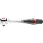 Het ontwerp van de ratel zorgt ook voor gebruiksgemak. Het eenvoudig ontgrendelen van de gebruikte gereedschappen door een druk op de knop, zelfs met olie op uw handen of handschoenen, maakt het werken efficiënter en gemakkelijker. Bovendien is de ratel duurzaam en bestand tegen een belasting tot 200 Nm met een gegarandeerde levensduur van 30.000 cycli.