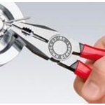 De Knipex comb.tang voldoet aan de hoogste veiligheidsnormen en is goedgekeurd voor gebruik met spanningen tot 1000 volt wisselstroom. Elk gereedschap wordt vóór de verkoop onderworpen aan een uitgebreide doorslagtest met 10.000 volt wisselstroom om ervoor te zorgen dat de isolatie bestand is tegen de spanningen. Hierdoor kunt u met volledig vertrouwen werken, wetende dat uw veiligheid altijd gewaarborgd is.