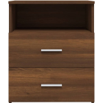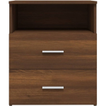 Deze set nachtkastjes wordt geleverd in een elegante bruineiken kleur en heeft een afmeting van 50 x 32 x 60 cm (B x D x H). Bestel ze vandaag nog en geniet van een modern en georganiseerd interieur!