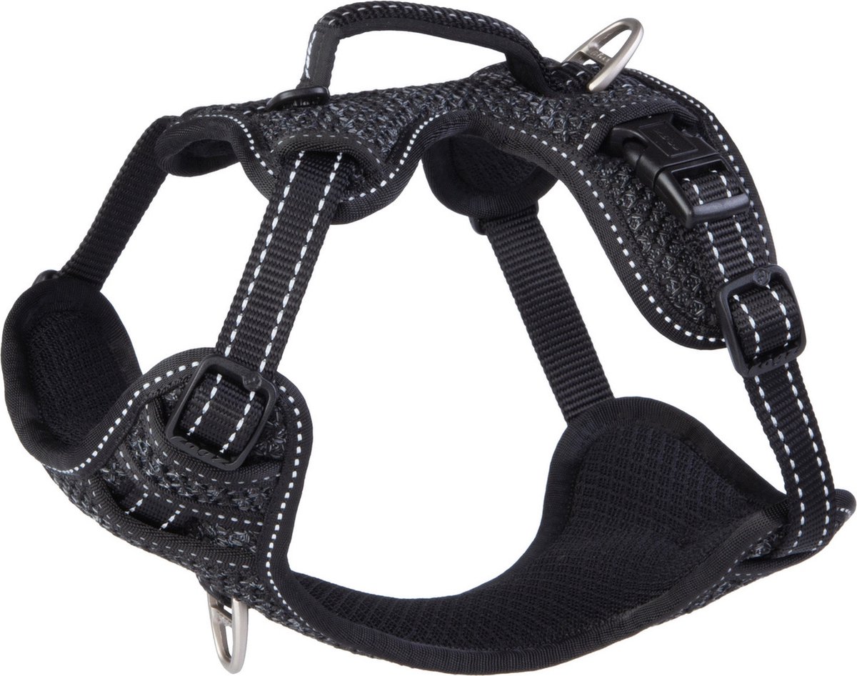 Bent u nog op zoek naar een mooi tuig voor uw hond? Dan is dit Utility Explore tuig van het merk Rogz precies wat u zoekt. Het tuig geeft u extra controle en is comfortabel voor uw hond. Om druk op de nek te voorkomen heeft dit tuig een gevoerde borstplaat die de druk van de nek overbrengt naar de borst. Hierdoor is het ook geen probleem wanneer u met de steunhendel uw hond over obstakels of in en uit de auto helpt. Zowel aan de bovenkant als aan de voorkant van het tuig zitten ringen om een riem aan te bevestigen. Omdat elke hond natuurlijk een ander bouw heeft is dit tuig ook volledig verstelbaar. Het tuig is perfect voor een heerlijke lange wandeling. Om ervoor te zorgen dat uw hond zichtbaar is in het donker heeft het tuig reflecterende stiksels.
