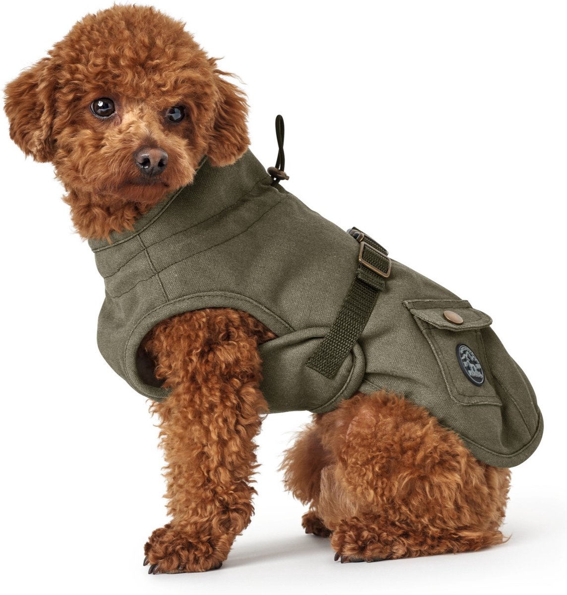 Deze stoere en modieuze hondenjas is gemaakt van innovatief katoenmateriaal. Het is water- en windbestendig en met zijn verwarmende teddyvoering geschikt voor hele koude winterdagen. De gesloten buikzijde en de elastische, in lengte verstelbare lussen voor de achterpoten, zorgen voor een perfecte pasvorm, ongeacht de lichaamsbouw van jouw hond.