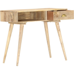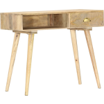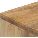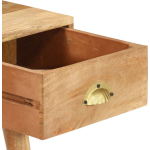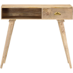 Gemaakt van massief mangohout is deze tafel niet alleen stijlvol, maar ook duurzaam. Het snijwerk op elke lade geeft de tafel een unieke en authentieke uitstraling. Het tafelblad biedt voldoende ruimte om decoratieve items neer te zetten, terwijl de lades extra opbergruimte bieden voor kleine spullen.