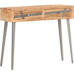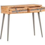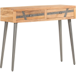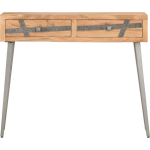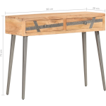 Deze wandtafel in industriële stijl straalt een vintage charme uit en is een tijdloze aanvulling op je huis. Het bijzettafeltje is gemaakt van stevig en duurzaam acaciahout, met prachtige houtnerven die elk meubelstuk uniek maken.