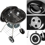 De kogelbarbecue is gemaakt van hoogwaardig staalcoating, verzinkt staal, verchroomd staal en hittebestendig kunststof. Dit zorgt voor duurzaamheid en een lange levensduur van de barbecue, zelfs bij intensief gebruik. Dankzij de handige wielen kunt u de barbecue gemakkelijk verplaatsen naar de perfecte plek in uw tuin of terras. Voor extra gemak is er een opbergvlak voor barbecuetoebehoren, zodat u altijd alles bij de hand heeft.
