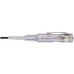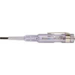 Om spanning te controleren, druk je eenvoudig de als schroevendraaierkling uitgevoerde tastelektrode op de geleider en leg je één vinger op de aan het einde van het kunststof heft aangebrachte elektrode (massa). Zodra er spanning wordt gedetecteerd, licht het in het heft ingebouwde lampje op.