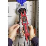 Met zijn handige eenhandige bediening kunt u eenvoudig spanning meten op stopcontacten zonder dat u extra gereedschap nodig heeft. Bovendien heeft de stroomtang functionaliteiten zoals een continuïteitstest, polariteitscontrole en een meetwaardegeheugen. Dankzij de True RMS-meetmethode is de meting nauwkeurig en betrouwbaar.