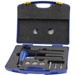 De Gesipa 1619731 Popnageltang 212 mm GBM 40-R compact is een handig en snel gereedschap dat blindklinkmoeren tot M12 kan bevestigen. Met zijn compacte design biedt deze tang goede toegankelijkheid tot het werkstuk en weegt hij bovendien zeer weinig. De ratelfunctie zorgt voor een uitstekende krachtoverbrenging en het is mogelijk om het mondstuk en de schroefdraaddoorn snel en zonder gereedschap te verwisselen. Bovendien zijn de mondstukken en schroefdraaddoorn compatibel met de GBM 50. Met de levering van de GBM 40-R ontvang je de draaddoorn en mondstukken voor M5, M6, M8 en M10, evenals een montagesleutel en een gebruiksaanwijzing met onderdelenlijst. Het hele pakket wordt geleverd in een handige kunststof draagkoffer.