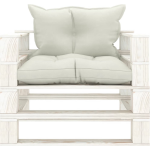Deze pallet bank wordt geleverd in een prachtige kleurencombinatie van beige en wit, wat perfect past bij verschillende buiten- en binnenomgevingen. De set bevat een pallet armstoel, een zitkussen en een rugkussen, zodat je direct kunt genieten van het comfort en de stijl.