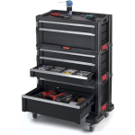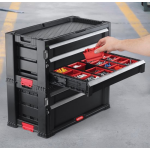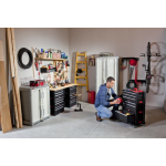 De ladekast beschikt over 2 volledig uittrekbare diepe laden met verwijderbare verdelers voor het opbergen van grotere powertools en handgereedschap. Daarnaast zijn er nog 5 slanke laden beschikbaar voor het organiseren van andere gereedschappen, accessoires en kleine onderdelen. Om ervoor te zorgen dat al uw boutjes, schroeven, spijkers en moertjes netjes geordend blijven, zijn er ook 16 verwijderbare kleine bakjes inbegrepen.