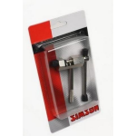Maak jouw fietsreparaties een stuk gemakkelijker met de Simson kettingpons. Deze kettingpons is voorzien van een handvat dat zorgt voor optimaal gebruiksgemak. Daarnaast is de kettingpons uitgerust met een speciaal gevormde geleider, waardoor je de ketting niet meer met de hand hoeft te plaatsen. De geleider zorgt voor de juiste kettingpositie, wat resulteert in een snelle en nauwkeurige montage. De Simson kettingpons is geschikt voor alle Shimano Uniglide en Hyperglide kettingen, waardoor deze geschikt is voor een breed scala aan fietsen.