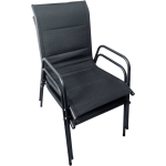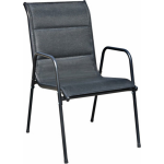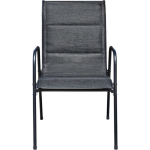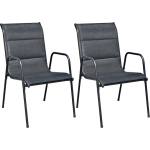 Deze verfijnde tuinset is perfect om je tuin, terras of eetkamer een elegante uitstraling te geven. De comfortabele stoelen zijn gemaakt van hoogwaardig gepoedercoat staal, waardoor ze niet alleen sterk en duurzaam zijn, maar ook een moderne en tijdloze look hebben. De stoelen zijn voorzien van sterke textileen stof met een waterdichte voering, wat zorgt voor ultiem comfort tijdens het zitten. Bovendien zijn ze weerbestendig en gemakkelijk schoon te maken, waardoor ze perfect zijn voor buitengebruik.