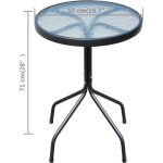 De tuinset is uitgevoerd in een elegante zwarte kleur, die moeiteloos past bij elke buitenruimte. De afmetingen van de tafel zijn 50 x 71 cm (ø x H),en de stoelen hebben afmetingen van 51 x 66 x 88 cm (B x D x H). De zitting van de stoelen is 50 cm breed en 45 cm diep, terwijl de zithoogte vanaf de grond 40 cm is. De armleuningen zijn op een hoogte van 59 cm vanaf de grond geplaatst. Het 5 mm dikke geribbelde glazen tafelblad voegt extra stijl toe aan het geheel.