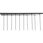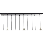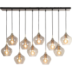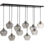De Rakel hanglamp is voorzien van 10 lichtpunten met een antiek bronzen kleur en rookglazen kappen. Het matte gouden kleur van de pendels zorgt voor een warme en luxe uitstraling. De pendels zijn op verschillende hoogtes geplaatst, wat zorgt voor een speels effect. De langwerpige zwarte plafondplaat van 120 x 25 cm maakt deze hanglamp een echte eyecatcher in je interieur.