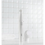 Met de Braun Face geniet je van een vlekkeloze uitstraling. Dit compacte en handige apparaat combineert twee gezichtsbehandelingen in één: precieze epilatie van fijne haartjes en zachte reiniging tot diep in de poriën met de borstel. De gezichtsepilator heeft een smalle kop met 10 micro-openingen om zelfs de fijnste haartjes (0,02 mm) aan te pakken. De reinigingsborstel werkt met microbewegingen en reinigt 6 keer beter dan een handmatige reiniging. De Braun Face is dermatologisch getest en geschikt voor dagelijks gebruik, zelfs bij een gevoelige huid. Dankzij het compacte formaat en de batterijvoeding kun je het apparaat overal mee naartoe nemen. Voor topprestaties en optimale hygiëne vervang je het borsteltje elke 3 maanden. Creëer een vlekkeloze uitstraling met Braun Face!