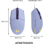 Logitech 203 LIGHTSYNC Gaming Muis - Paars