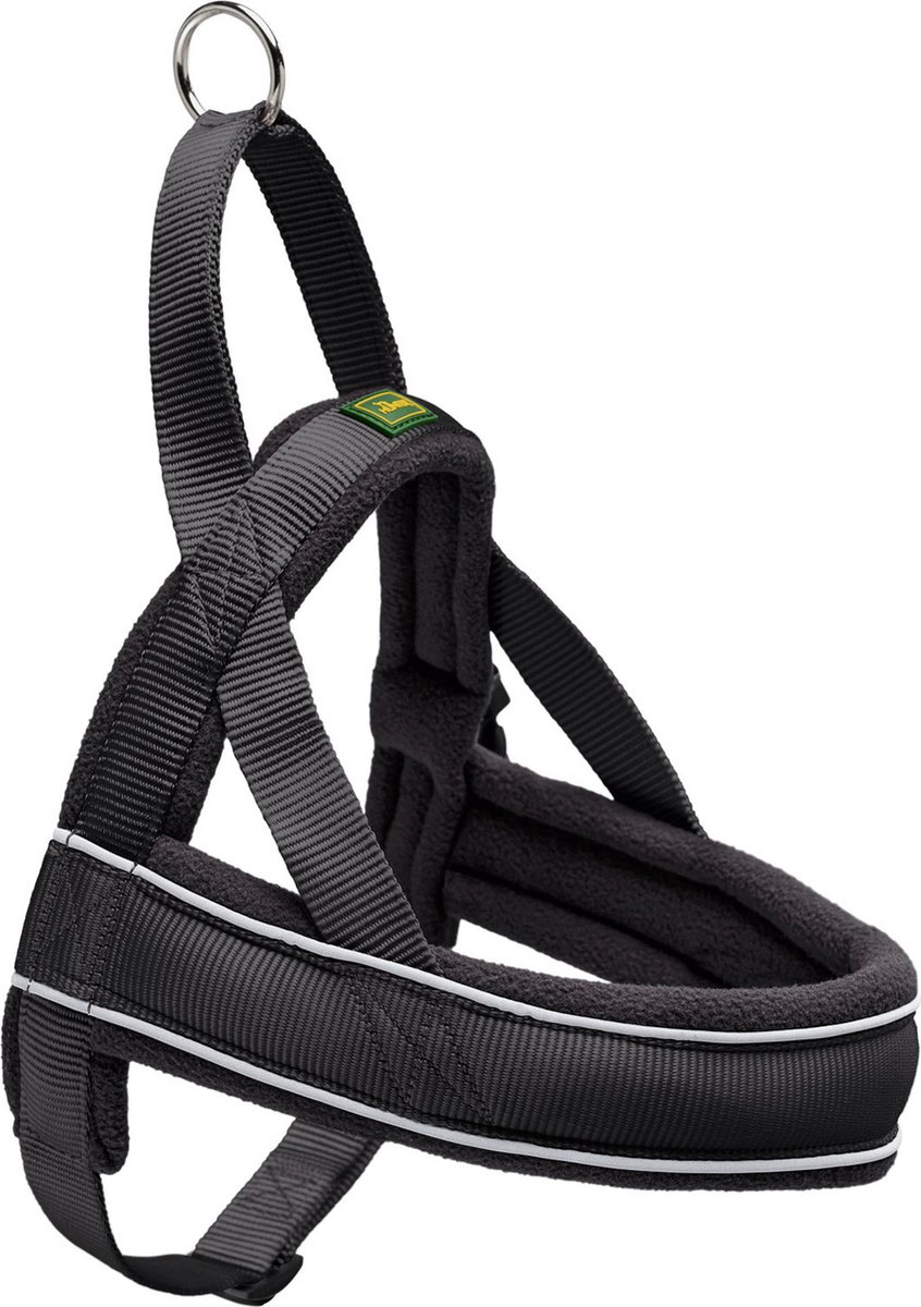De verstelbare buikriem zorgt altijd voor een goede pasvorm, terwijl de zachte fleecevoering rond de borst, nek en schouders voor extra comfort zorgt. De banden van duurzaam nylon en de fleecevoering zijn zacht voor de vacht van jouw hond. Bovendien vergroten de reflecterende strips op de banden de zichtbaarheid van jou en jouw hond in omstandigheden met weinig licht.