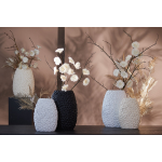 De Aloha vaas is een opvallende verschijning met zijn mat witte oppervlak bezaaid met witte bloemen. Deze royale vaas is maar liefst 40 cm hoog en heeft een ondiepe vorm die perfect is voor op een vensterbank of sidetable. Er zijn diverse varianten van deze vaas verkrijgbaar, zodat je altijd een exemplaar kunt vinden dat bij jouw interieur past.