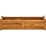 Deze plantenbak is vervaardigd van hoogwaardig acaciahout, wat zorgt voor een uitstekende stevigheid en duurzaamheid. Het hout is behandeld met een warme, rustieke olieafwerking, waardoor de plantenbak een mooie natuurlijke uitstraling heeft. Het ontwerp is simpel en rechthoekig, waardoor de plantenbak moeiteloos opgaat in elke buitenruimte en een stijlvolle toevoeging vormt.
