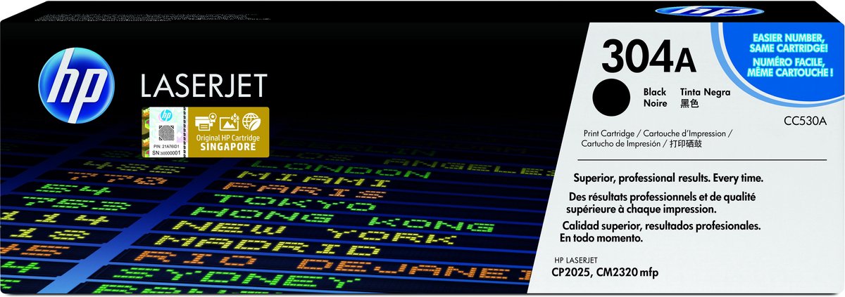 De HP Tonercartridge 304A zwart (CC530A) is onmisbaar op jouw kantoor wanneer je graag op een professionele manier print. Deze tonercartridge zorgt ervoor dat alle prints van printshopkwaliteit zijn. Kleuren van afbeeldingen zijn opvallend en tekst is scherp dankzij deze tonercartridge. Niemand kan nog om de fantastische printkwaliteit heen op je kantoor als je kiest voor de HP 304A. Bovendien kun je met deze tonercartridge veel meer printen dan met niet-HP cartridge. Onafhankelijk onderzoek heeft aangetoond dat HP cartridges tot wel vijftig procent meer pagina's printen dan geteste nagevulde gereviseerde niet-HP cartridges. Wacht niet langer en koop de HP Toner 304A voor het allerbeste printresultaat.