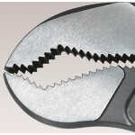 Met de Cobra XL 8701400 waterpomptang van Knipex behoort het zoeken naar de juiste sleutelwijdte tot het verleden. Deze tang is ontworpen met het gemak van de gebruiker in gedachten. Je hoeft enkel de bovenste bek tegen het werkstuk te houden en met een druk op de knop schuift de onderste bek automatisch naar de juiste positie. Dit bespaart tijd en moeite bij het klussen.