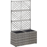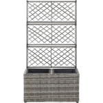 Een charmante toevoeging aan elke buitenruimteVoeg een vleugje charme toe aan je tuin, patio of terras met deze prachtige verhoogde poly rattan plantenbak. Met een ingebouwd latwerk en 2 uitneembare potten, is deze plantenbak niet alleen functioneel, maar ook een prachtig decoratief element. De grijze kleur van het poly rattan materiaal en de kunststof constructie zorgen ervoor dat de plantenbak een stijlvolle uitstraling hee... lees meer over dit product