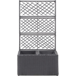 Voeg een vleugje charme toe aan je tuin, patio of terras met deze prachtige verhoogde poly rattan plantenbak. Met een ingebouwd latwerk en 2 uitneembare potten, is deze plantenbak niet alleen functioneel, maar ook een prachtig decoratief element. De grijze kleur van het poly rattan materiaal en de kunststof constructie zorgen ervoor dat de plantenbak een stijlvolle uitstraling heeft.