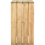 Deze bartafel is vervaardigd uit geïmpregneerd grenenhout, wat zorgt voor duurzaamheid en corrosiebestendigheid. Dit maakt de tafel perfect geschikt voor buitengebruik, ongeacht het weer. Je kunt dus gerust genieten van je buitenactiviteiten zonder je zorgen te maken over de levensduur van je tuinmeubelen.