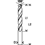 De metaalboren hebben een type N spiraalboor die rechts snijdend is, met een boorpunt van 135°. Ze voldoen aan de DIN 1412 C norm en leveren consistente prestaties en duurzaamheid.