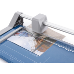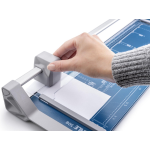 Deze rolsnijmachine is perfect voor het op maat snijden van papier, foto's en folie. De machine is uitgerust met een geslepen en roterend rond mes dat veilig is opgeborgen in een gesloten kunststof kop. Hierdoor kun je moeiteloos en nauwkeurig snijden zonder het risico op letsel.