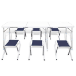 Met deze inclusieve inklapbare kampeertafelset is het gemakkelijker dan ooit om buiten te eten en te ontspannen. De set bestaat uit een inklapbare tafel en zes inklapbare krukken, waardoor het perfect is voor gebruik in keukens, op terrassen, in tuinen, picknicks en kampeervakanties.