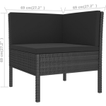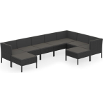 De loungeset is uitgevoerd in een elegante zwarte kleur die moeiteloos past bij elke tuininrichting. Met een combinatie van middenbanken, hoekbanken en voetenbanken biedt deze set voldoende zitplekken voor iedereen. Of je nu een BBQ organiseert of gewoon wilt ontspannen, deze loungeset is zowel stijlvol als functioneel.