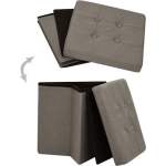De opbergkrukken hebben een afmeting van 38 x 38 x 38 cm (B x D x H) en zijn voorzien van een comfortabel gevoerde zitting. Het knoop getufte ontwerp voegt een vleugje elegantie toe aan elk interieur. Montage is vereist, maar geen zorgen, het proces is eenvoudig. De levering bevat 2 opbergkrukken, zodat je direct kunt genieten van de functionaliteit en stijl die ze bieden.