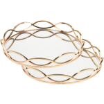 2x Stuks Ronde Kaarsenborden/kaarsen Plateaus Goud Met Spiegelbodem D23 Cm - Kaarsenplateaus