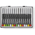 Deze set precisieschroevendraaiers is een must-have voor iedere klusser. Met de meest voorkomende schroefkoppen in verschillende maten heeft u altijd het juiste gereedschap bij de hand. De schroevendraaiers zijn uitgerust met draaibare handgrepen boven, wat zorgt voor een nauwkeurige toepassing en een comfortabele grip.