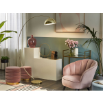 Deze staande lamp heeft een modern design met een gouden kleur, wat perfect past in verschillende interieurstijlen. De ronde vorm van de lampenkap zorgt voor een evenwichtige verlichting in de ruimte. Met een maximaal wattage van 40W en de mogelijkheid om één lichtbron toe te voegen, creëer je eenvoudig een warme en sfeervolle ambiance in een handomdraai.