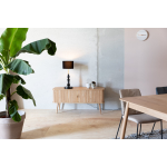 Het Zuiver Barbier dressoir is niet alleen functioneel, maar ook ontworpen met oog voor detail. De slanke, taps toelopende pootjes geven het dressoir een luchtige uitstraling, terwijl de uitsparingen in zowel de achterkant als bodem van de kast zorgen voor een nette en georganiseerde opstelling van kabels van audio-apparatuur. Hierdoor kan Barbier ook dienen als stijlvol audio-meubel, waarbij je apparatuur discreet uit het zicht blijft.