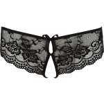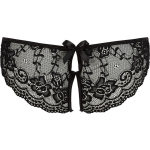 Deze kruisloze kanten hipster is alles wat je nodig hebt voor een romantische avond thuis. Het elegante kant heeft een vrouwelijk bloemenpatroon met een opwindend doorschijnend effect. De kleine zwarte strikjes aan zowel de voor- als achterkant geven dit slipje bovendien een lief uiterlijk en trekken gegarandeerd de aandacht. De hipster is gemaakt van elastisch materiaal dat zorgt voor een goede pasvorm, waardoor je zowel thuis als onder je jurk kunt genieten van het comfort en de sensualiteit van deze hipster.