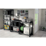 Het mat zwarte kunststof opbergrek heeft een rustige uitstraling en ziet er minder 'lomp' uit dan een zwaar metalen opbergrek. Het Joining System biedt de mogelijkheid om het rek naar wens te combineren met andere Keter kunststof stellingkasten. Bovendien kun je de tussenstukken gebruiken om het opbergrek horizontaal te monteren. Dit veelzijdige opbergrek is perfect voor voorraadkasten, bijkeukens, garages, magazijnen, schuren en overal waar extra opbergruimte nodig is.