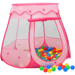 Opmerking: Deze speeltent komt inclusief een montagehandleiding voor eenvoudige installatie. De kleur van de tent is roze en het materiaal bestaat uit polyester en staal. Let op, speelballen zijn niet inbegrepen bij de levering.