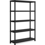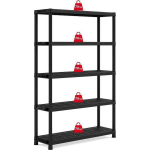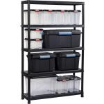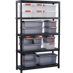 Met verstelbare legplanken, verhoogde voetjes en een stevige constructie die zonder gereedschap in slechts 10 minuten in elkaar staat, is dit opbergrek zowel functioneel als gebruiksvriendelijk. Het mat zwarte kunststof geeft het rek een rustigere uitstraling en maakt het minder 'lomp' dan traditionele metalen opbergrekken.