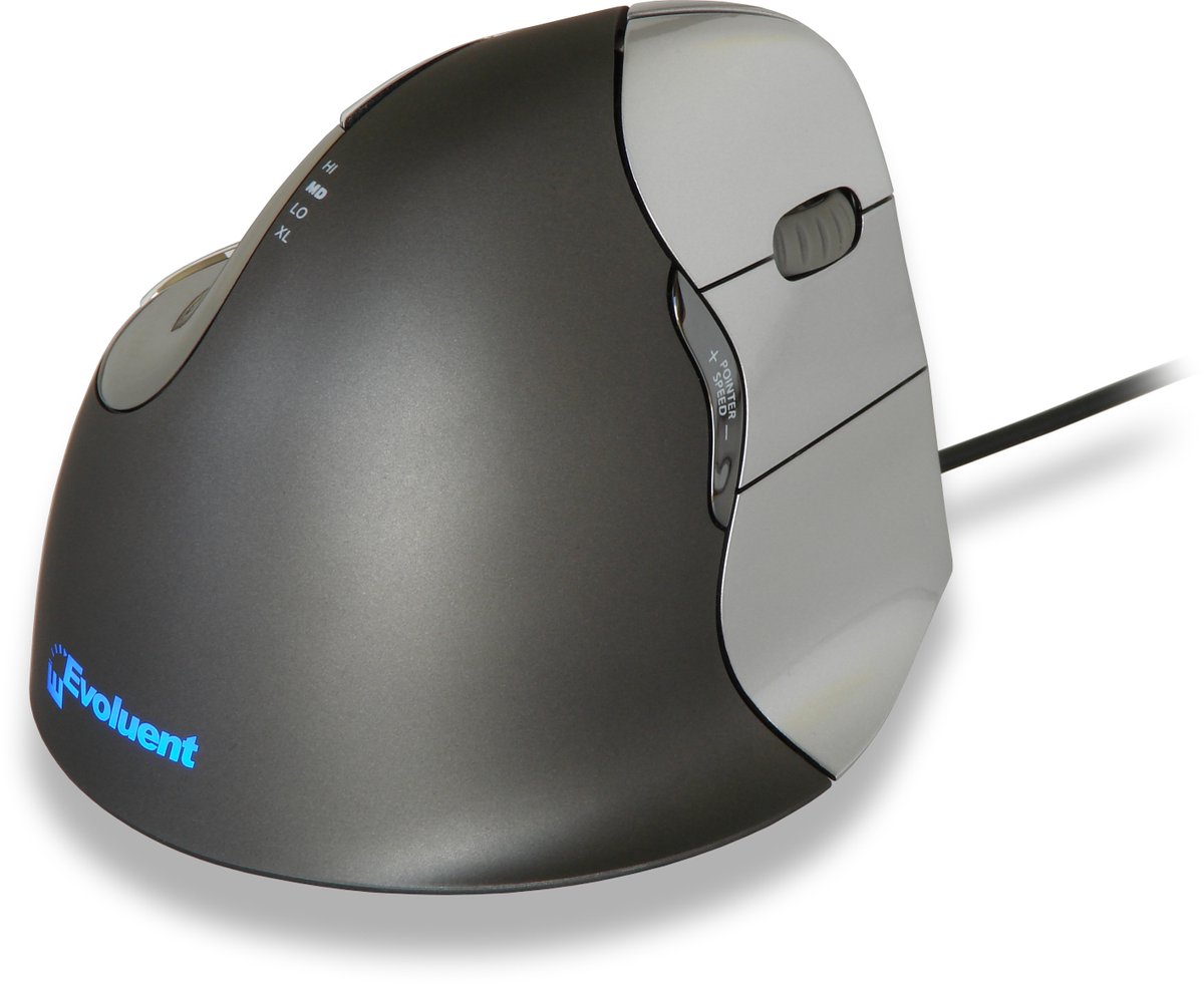 Evoluent 4 Verticale Ergonomische Muis Bedraad Medium De Evoluent 4 medium muis is een bedrade verticale muis, speciaal ontworpen voor rechtshandig gebruik, met 5 aanpasbare knoppen en een scrollwheel voor optimaal comfort en functionaliteit. Door de verticale positie van hand, pols en onderarm vermindert deze muis aanzienlijk de kans op klachten zoals RSI of een muisarm. Eenvoudig te verbinden met elk USB-apparaat. Ergonomisc... lees meer over dit product
