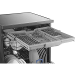 Met een ruime capaciteit van 15 couverts biedt deze vaatwasser voldoende plaats voor al jouw servies, pannen en glazen. Het ergonomische ontwerp zorgt ervoor dat het in- en uitladen van de vaat een fluitje van een cent is. Daarnaast is de bovenkorf in hoogte verstelbaar, zodat ook grote pannen moeiteloos in de onderkorf passen. Dankzij de neerklapbare rekjes in zowel de boven- als onderkorf kun je de vaatwasser geheel naar eigen wens indelen.
