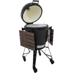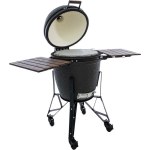 De barbecue is voorzien van een handige schijf bovenop waarmee je de luchtstroom en temperatuur eenvoudig kunt aanpassen. De rvs ash lifter vangt al het as op, zodat je de barbecue na een gezellige avond moeiteloos kunt schoonmaken. Daarnaast wordt de barbecue geleverd met een onderstel en zijtafels, wat het koken nog comfortabeler maakt.