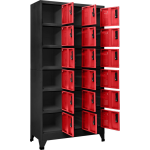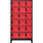 Stijlvolle lockerkast voor georganiseerde opslag in elke ruimteVoeg een moderne en decoratieve touch toe aan jouw (kantoor)ruimte met onze lockerkast. Het strakke ontwerp en de antracietkleur in combinatie met het opvallende rode accent maken deze kast een echte blikvanger. De kast is gemaakt van duurzaam staal, wat zorgt voor zowel stevigheid als eenvoudig schoonmaken.Veelzijdig en praktisch designDeze lockerkast kan dien... lees meer over dit product