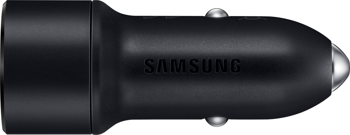 Wil je in jouw auto snel jouw telefoon kunnen laden? Kies dan voor deze autolader van Samsung! De lader beschikt over twee USB-poorten en ondersteunt de speciale Fast Charge technologie. De lader koppelt eenvoudig met de sigarettenontsteker in jouw auto. Beschikt over twee universele USB-poorten Ondersteunt Fast Charge technologie voor razendsnel opladen Heeft een output van 2 ampère Koppelt met de sigarettenaansteker van jou... lees meer over dit product