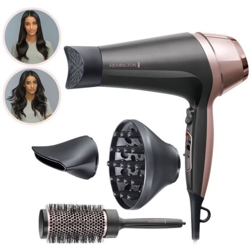 | In de doos | Föhn, diffuser, opzetstuk, ronde föhnborstel, handleiding. |