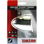 Simson Voorlicht Classic - Verlicht je fiets in retro stijlWil jij je fiets voorzien van een stoer retro accent? Dan is het Simson Voorlicht Classic de perfecte keuze! Dit voorlicht heeft een klassiek ontwerp en is uitgevoerd in een stijlvolle zilveren kleur. Met zijn grote aan- en uitknop is het bedienen van het voorlicht een fluitje van een cent. Met één zeer heldere witte led-lamp zorgt het Simson Voorlicht Classic voor e... lees meer over dit product